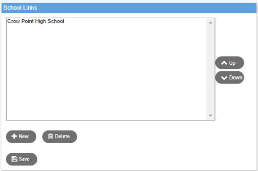 Note: To change the order of a school or organization listed, on the Favorites page, highlight its name, then click either Up or Down. To delete a school or organization link, highlight it and then click Delete.