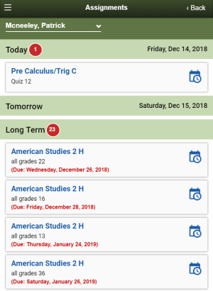 - From the Home screen, tap Assignments. A list of assignments due today, tomorrow, long term and overdue appears.