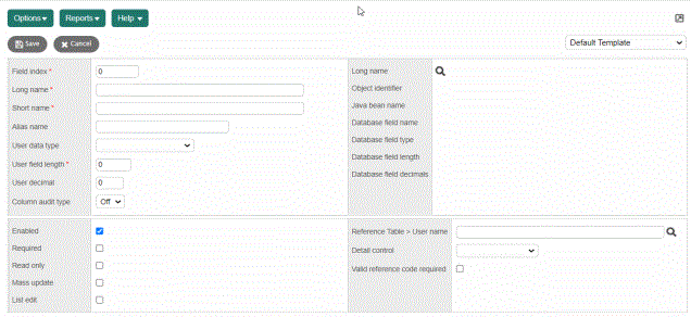Select this checkbox if users must enter a value in this column before they click Save. If they do not, Aspen warns them that they have not entered a value in a required column. Required columns display a red asterisk next to the column name.