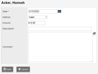 3. Make your selection, and click OK. The Cashier's Office Add Payment pop-up appears: